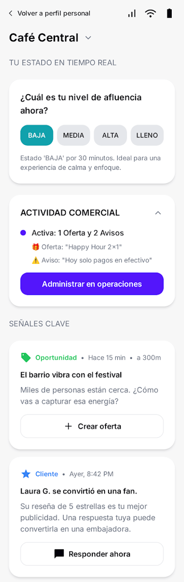 Olvida los dashboards complejos y los datos que no llevan a nada. Hubixa te da la inteligencia de ubicación que necesitas para una sola cosa: propiciar el encuentro perfecto. Te preparamos para el cliente que te está buscando y te hacemos visible en el momento exacto de su necesidad.